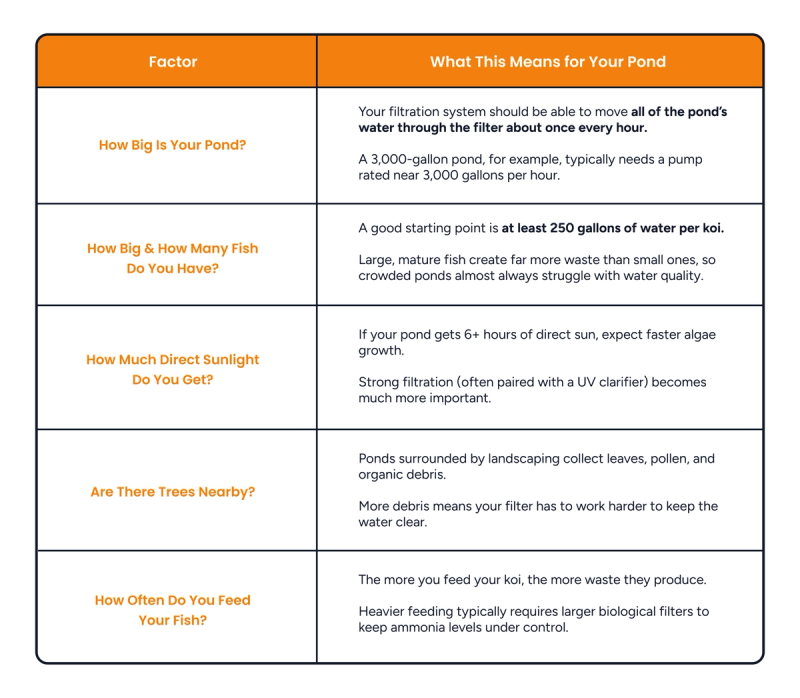 The best koi pond filtration system setup is one that’s properly matched to the pond itself.